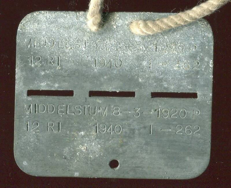 Identificatieplaatje van Jacob Nieborg uit Middelstum
