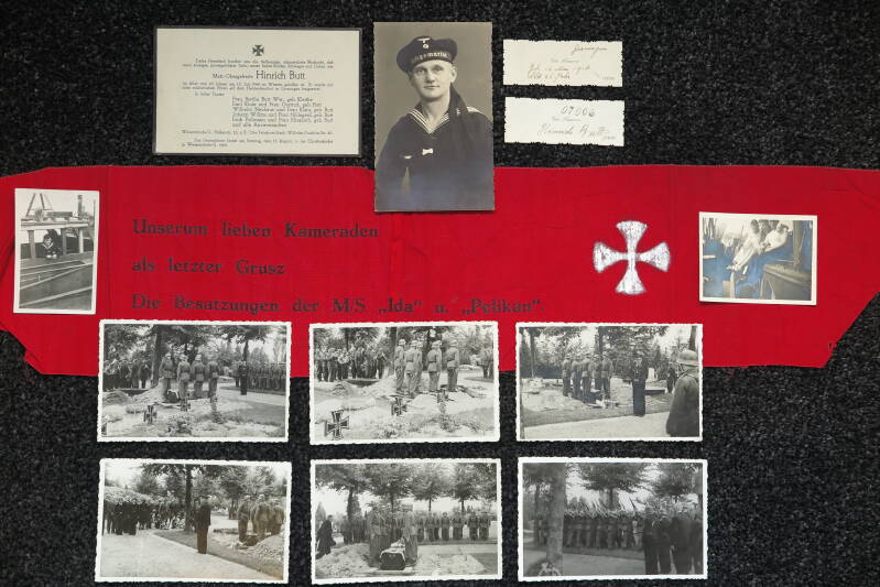 De nalatenschap van Hinrich Butt, thans in de collectie van het museum. Het graflint is origineel en is vermoedelijk na begrafenis meegenomen door of voor de familie.