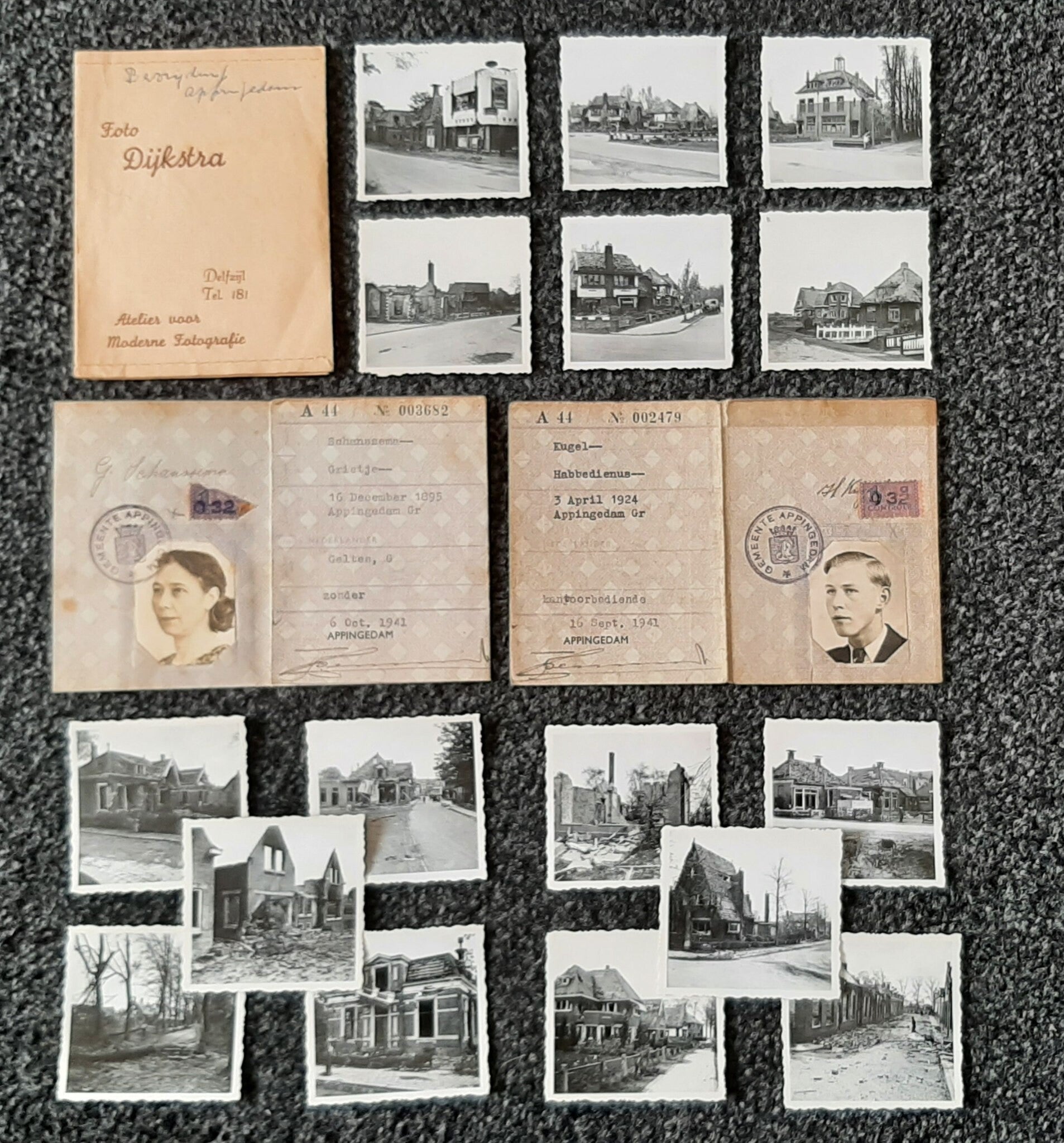 En dan natuurlijk het doel: spullen die niet worden weggegooid. Dat waren er nogal wat, uren lees- en kijkplezier! Naast een prachtige trommel voor Welfare Biscuits en een knijpkat met bijzonder verhaal was het vooral papierwerk wat werd binnengebracht. Verschillende nalatenschappen, allen uit de omgeving, wisten hun weg naar het museum te vinden. Hoofdzakelijk documentatie van Uithuizen en Appingedam, maar ook Middelstum, Veendam en de stad waren vertegenwoordigd in de vorm van persoonsbewijzen, bevrijdingsfoto's, kranten en documenten.
